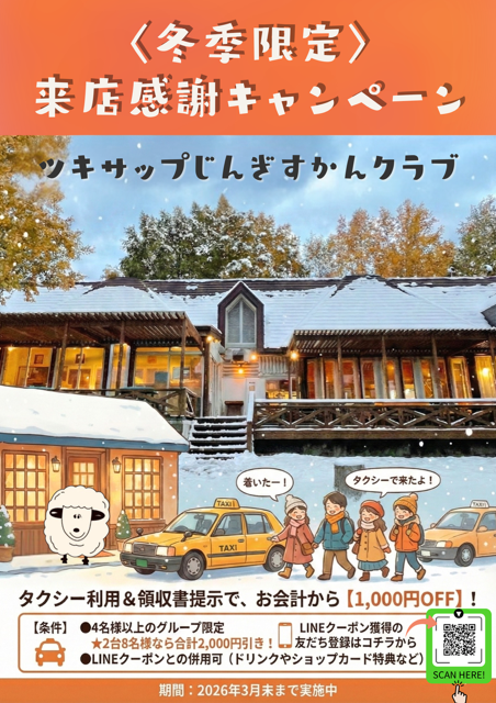 タクシー利用で1000円OFF | 札幌のジンギスカンならツキサップじんぎすかんクラブへ